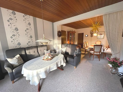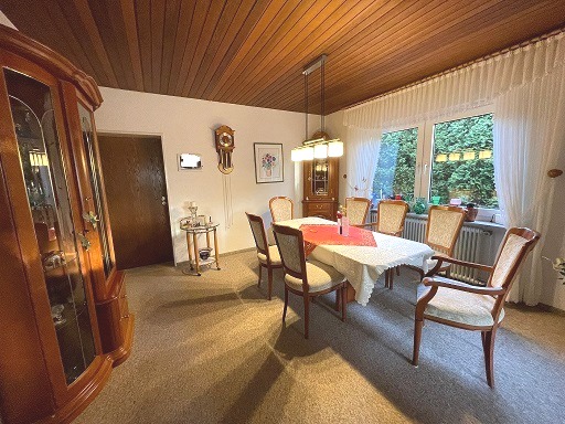 Der Bungalow bietet eine durchdachte und angenehme Raumaufteilung, die sich überwiegend auf einer Ebene erstreckt. Im Erdgeschoss empfängt eine funktionale Küche mit moderner Einbauküche, die den Alltag praktisch unterstützt. Angrenzend befindet sich ein kleines Wohn- bzw. Esszimmer, das sich ideal für den täglichen Gebrauch eignet. Ein weiteres, großzügiges Wohn- und Esszimmer bietet viel Platz für gemeinsames Wohnen, Essen und entspannte Stunden und bildet einen zentralen Treffpunkt des Hauses.