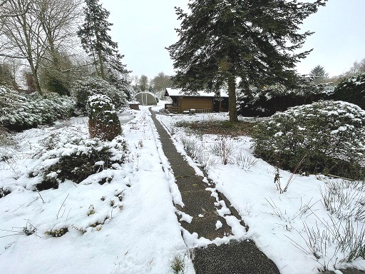 Das Grundstück liegt in direkter Südlage und ist liebevoll gestaltet. Ein großes Blockhaus bietet vielfältige Nutzungsmöglichkeiten, zum Beispiel als Hobbyraum, Werkstatt oder zusätzlicher Stauraum. Außerdem befinden sich ein Gewächshaus sowie ein kleiner Teich auf dem Grundstück, die besonders in den Sommermonaten eine idyllische Atmosphäre schaffen.