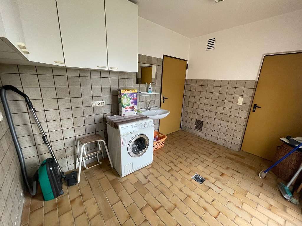 Von der Küche aus erreichen Sie den praktischen Hauswirtschaftsraum sowie direkt die Garage – ein besonderer Komfort, insbesondere bei schlechtem Wetter. Vom Hauswirtschaftsraum aus besteht zusätzlich ein direkter Zugang in den Garten. Ebenfalls angrenzend befindet sich der Heizungsraum.