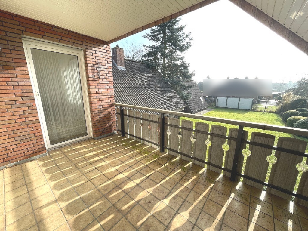 Über eine Treppe in der Diele gelangen Sie in das Obergeschoss. Hier stehen Ihnen drei großzügige Zimmer zur Verfügung sowie ein weiteres Badezimmer mit Dusche und WC. Zwei der Zimmer verfügen über einen direkten Zugang zur Loggia mit schönem Blick in den südlich ausgerichteten Garten. Die Südlage des Grundstücks sorgt für optimale Lichtverhältnisse und eine angenehme Atmosphäre im Außenbereich.
